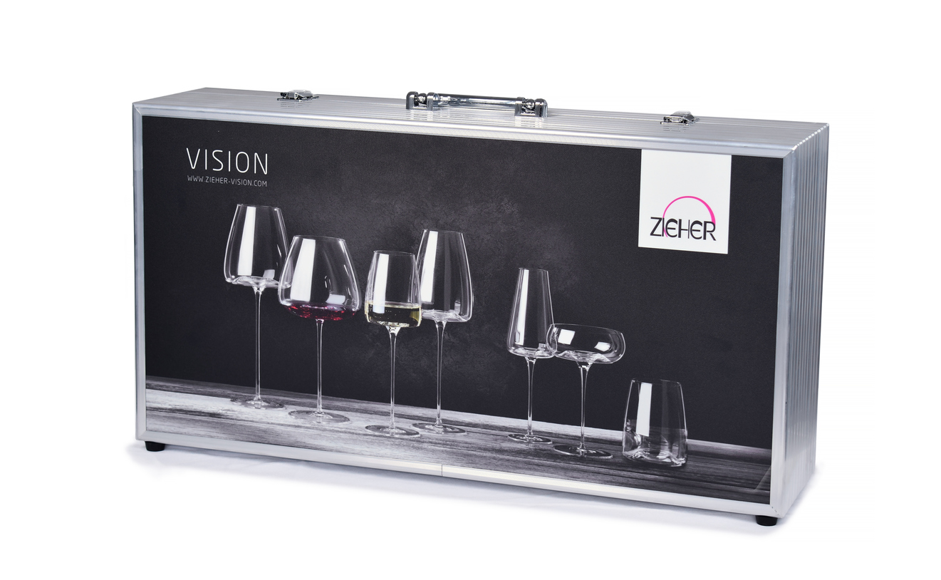 Stabiler Hartschalenkoffer mit passgenauer Schaumeinlage für alle Gläser der Serie VISION. Die ideale Lösung für Ihre Weinprobe.
