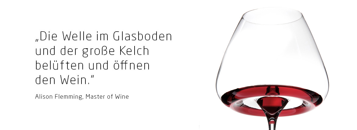 "Die Welle im Glasboden und der große Kelch belüften und öffnen den Wein."